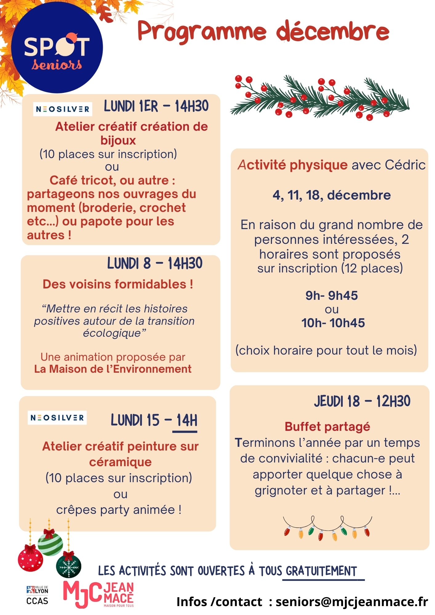 “Les Spot Senior sont des lieux d’accueil de proximité pour créer du lien, proposer de l’information. Bientôt au nombre de 7 pour la ville de Lyon, celui du 7ème est porté par la MJC et bénéficie du soutien financier de la ville et de l’appui du CCAS (Centre Communal d’Action Sociale)